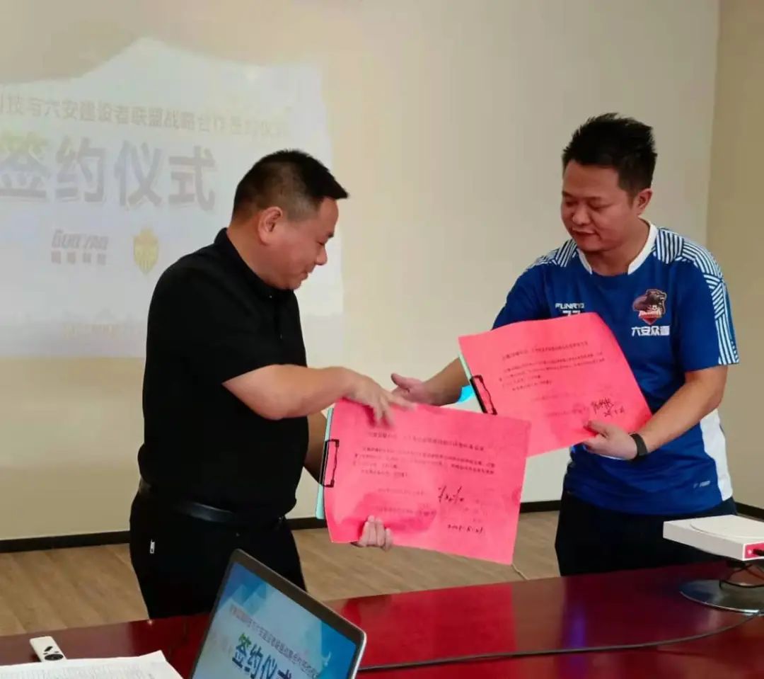 2021年8月21日下午,在六安市體育中心會議室,安徽國耀通信科技有限公司與六安建設(shè)者足球聯(lián)盟簽訂戰(zhàn)略合作協(xié)議,這標(biāo)志著雙方在長期友好合作的基礎(chǔ)上,結(jié)成了優(yōu)勢互補(bǔ)、強(qiáng)強(qiáng)聯(lián)合的戰(zhàn)略合作伙伴。安徽國耀通信科技有限公司總經(jīng)理陳浩、六安建設(shè)者聯(lián)盟代表、隊長陳科新等出席簽約儀式。
